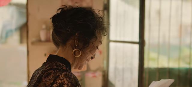 虽然没有一句台词,但却从她的表情上看到了欣慰和骄傲,随后她撇着嘴将叠好的成绩单塞到了胸口,这也是一位底层母亲保护珍宝的本能。